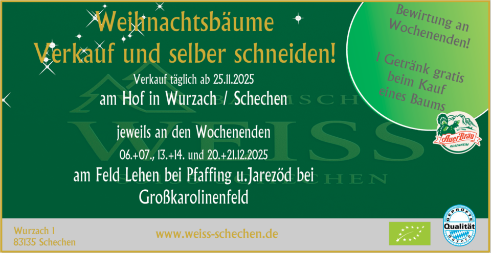 - Einer der größten bayrischen Christbaum Produzenten / Lieferanten rund um Rosenheim und München (Bayern) – in der Vorweihnachtszeit Christbäume auch zum selber schlagen